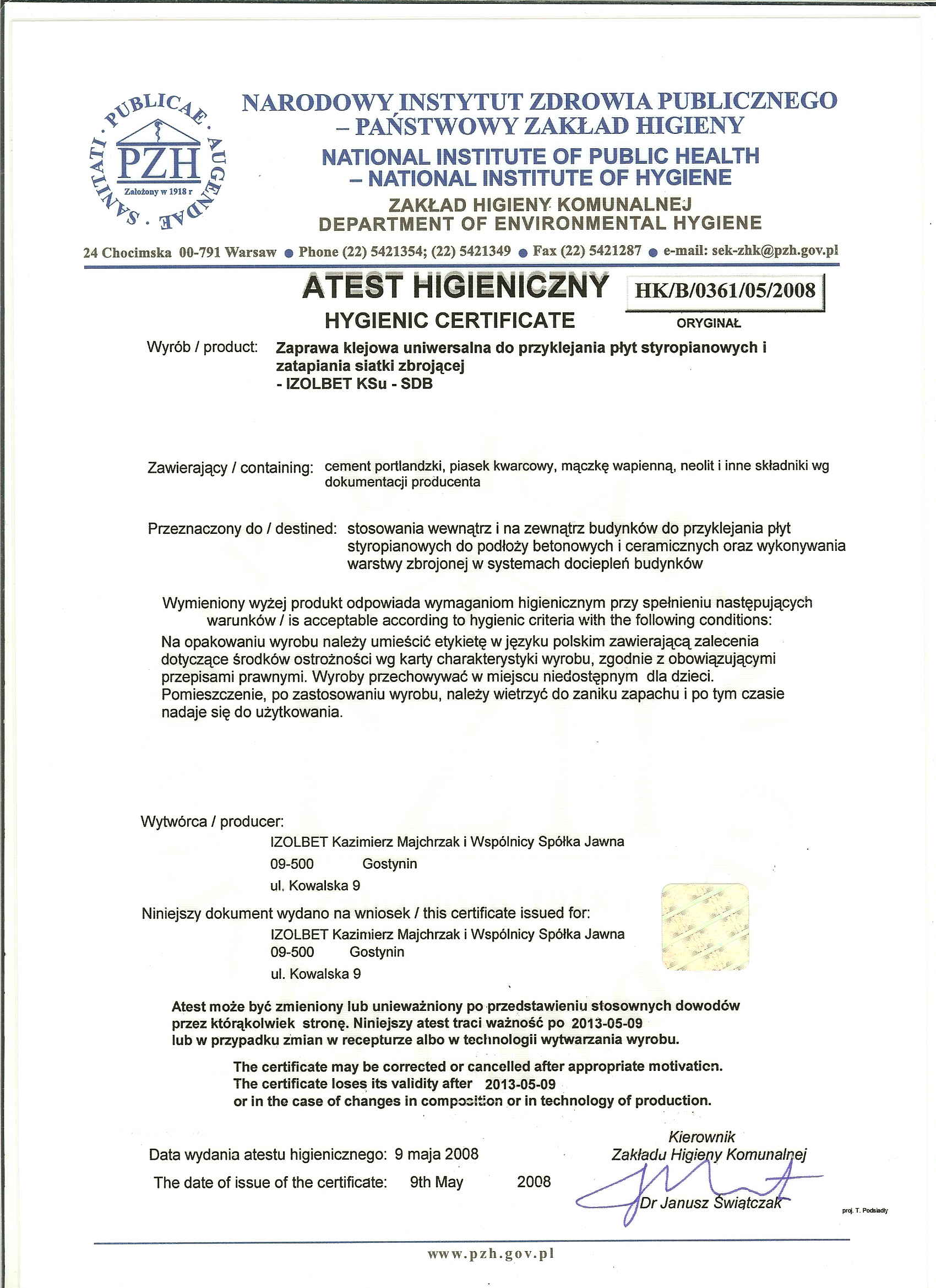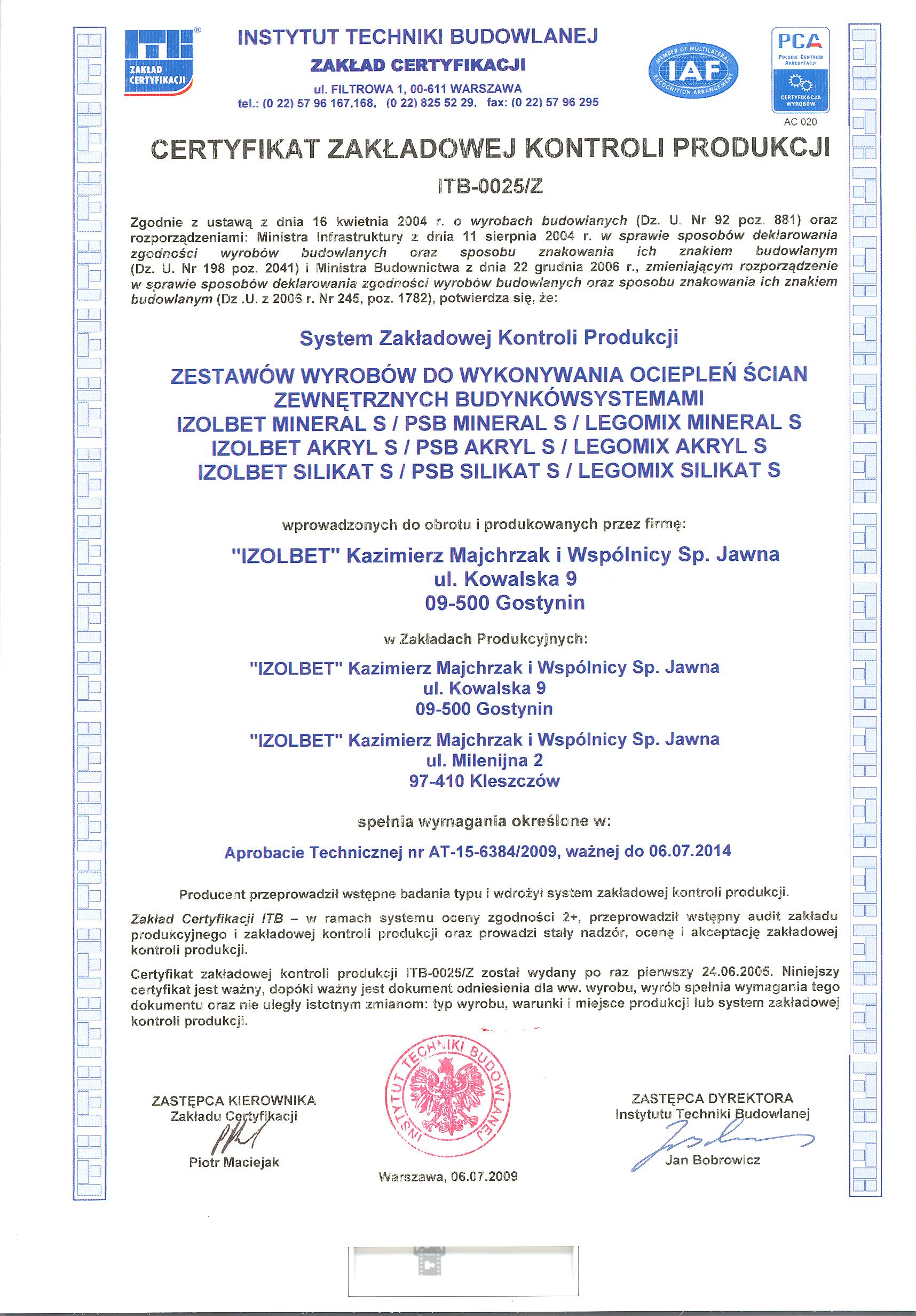 - > Certyfikat ZKP-SDB na bazie styropianu- KSu-SDB
