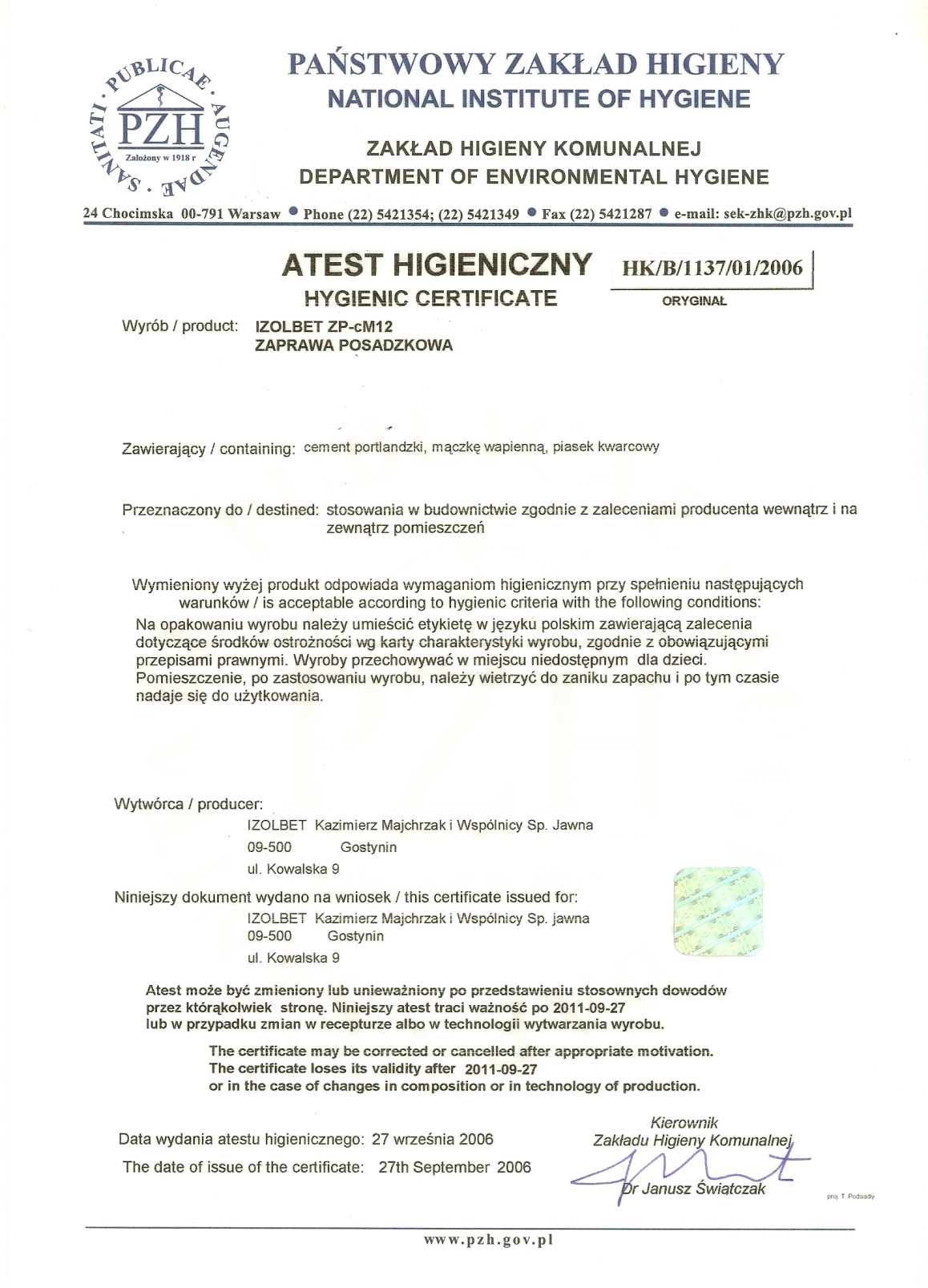 Stosować ściśle wg zaleceń Producenta oraz zasad sztuki budowlanej. Zachować oryginalne opakowanie i przedstawić rachunek zakupu. Producent nie ponosi odpowiedzialności za stosowanie wyrobu niezgodnie z przeznaczeniem.